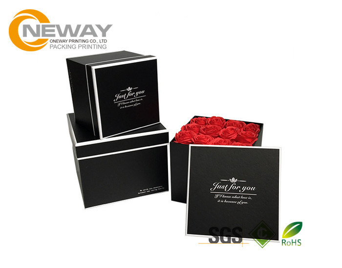 Boîte de papier de fleur populaire de rectangle de Mand de main de boîte-cadeau de fleur avec la forme du chapeau noire